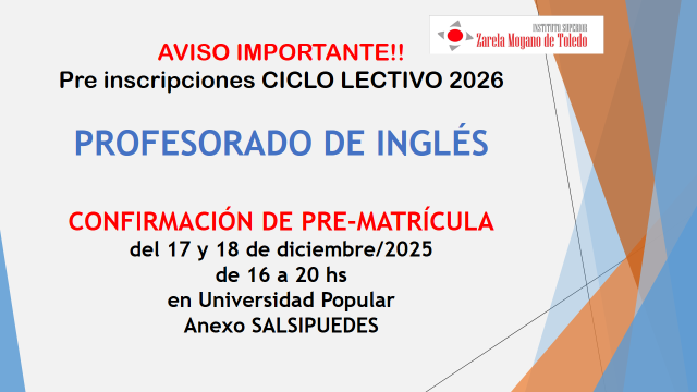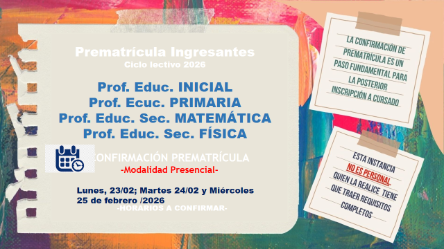 - Abonar CONTRIBUCIÓN PRE-MATRÍCULA 2026 ASOC. COOPERADORA (Consultar en Secretaría del Instituto)